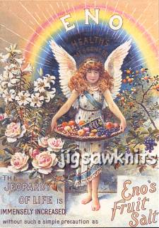 Locutor: Refresque o organismo, neutralize a acidez, limpe o intestino com o Sal de Fruta Eno. Não sendo em vidros, não é o legítimo Sal de Fruta Eno.Jingle em ritmo de foxtrot: