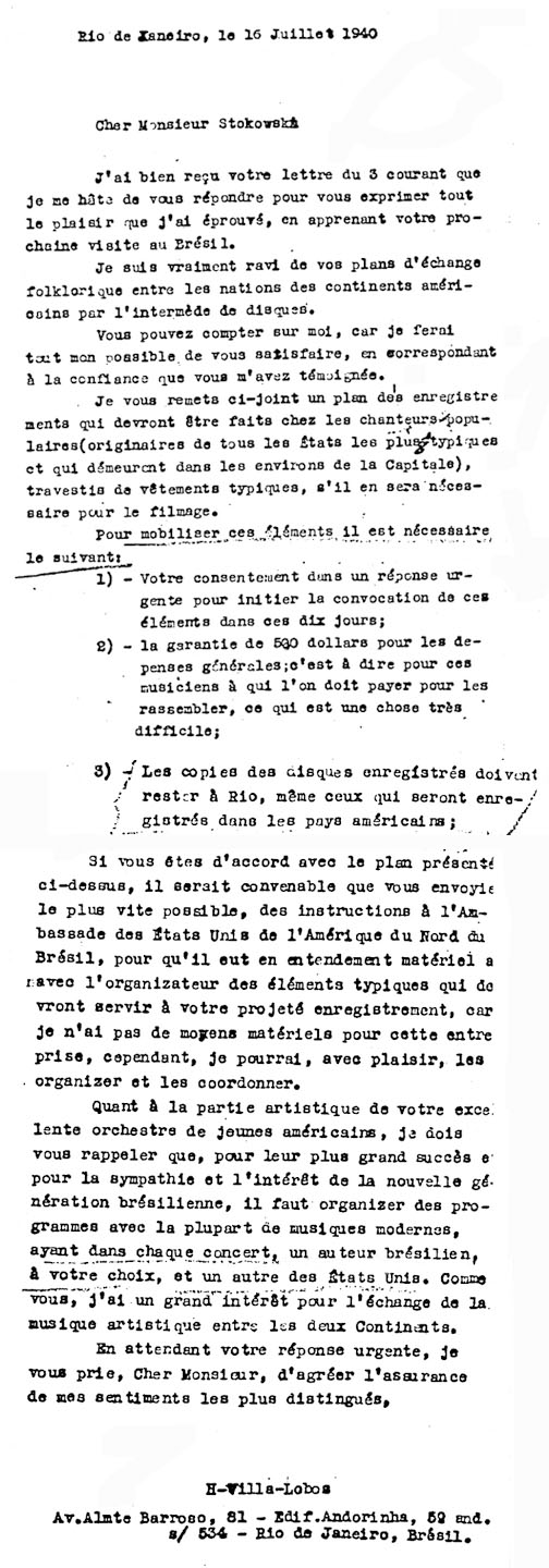 Letter from Villa-Lobos to StokowskiArranging the recordings of Native Brazilian Music.Daniella Thompson4 March 2002Scan courtesy of Aloisio Milani Donga to Villa-LobosDonga para Villa-Lobos Copyright © 20022015 Daniella Thompson. All rights reserved.