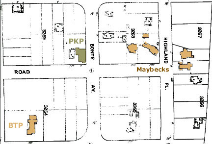 The Maybeck houses are directly to the east.Daleys Scenic Park was the first residential subdivision in the north Berkeley hills. Bounded by Hearst Avenue on the south, Arch Street on the west, Cedar Street on the north, and La Vereda Road and Highland Place on the east, the tract initially comprised 26 city blocks immediately to the north of the U.C. Berkeley campus. On 26 August 1889, owner Thomas Daley filed a subdivision map of the tract at the office of the County Recorder of Alameda County.