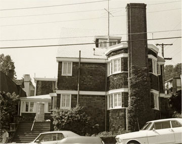 An article in the Berkeley Daily Gazette of 10 April 1974 sought information about the fine mystery house, reputed at the time to have been the work of Ernest Coxhead. The house was still in good repair then and retained all its original windows. The entrance door on La Loma Ave. was glazed.