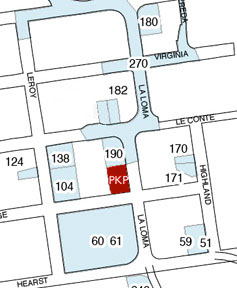 Since the blocks along Hearst Avenue have become institutionalized, the La Loma-Ridge intersection effectively serves as the eastern gate to residential Daleys City Park. On this intersection, the Phi Kappa Psi Chapter House is the lone historic building remaining.