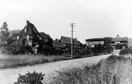 (photo: Dimitri Shipounoff collection, BAHA archives)At the time, the neighborhood was still largely unpopulated. Some of Daleys Scenic Parks most famous landmarksCloyne Court, Allenoke Manor, the William Rees House, the Oscar Maurer Studiowere yet to be built. Beta Theta Pi (Ernest Coxhead, 1893) stood alone on its square block. On the next block to the north, there were only three houses: Weltevreden (A.C. Schweinfurth, 1896) and the Atterbury house (McCrea & Knowles, 1898) on Le Conte Avenue and the Loren E. Hunt house (George Frederick Estey, 1896) on Ridge Road. Phi Kappa Psi would be the fourth house on this block, and for a number of years, the lots to its north, east, southeast, and south were vacant.